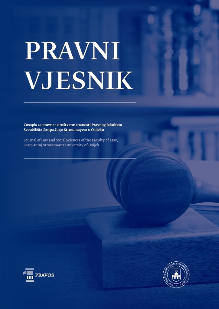 Authors retain the copyright on the papers published in the Journal, but grant the right of first publication to the Journal. Papers accepted for publication or already published in Pravni vjesnik of the Faculty of Law in Osijek may be published by the author(s) in other publications only with proper notice of its previous publication in Pravni vjesnik.